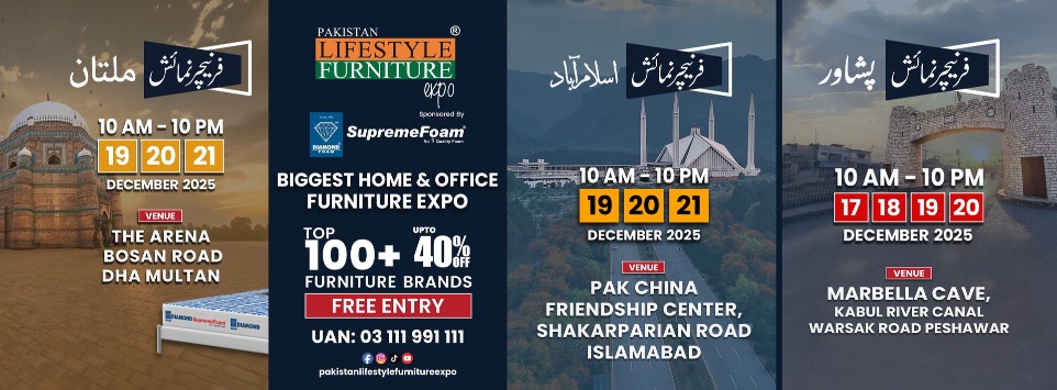 We are coming to Islamabad, Multan and Peshawar with Top 100 Furniture Brands. See you there on 19,20,21 Dec 2025 on your desired city.